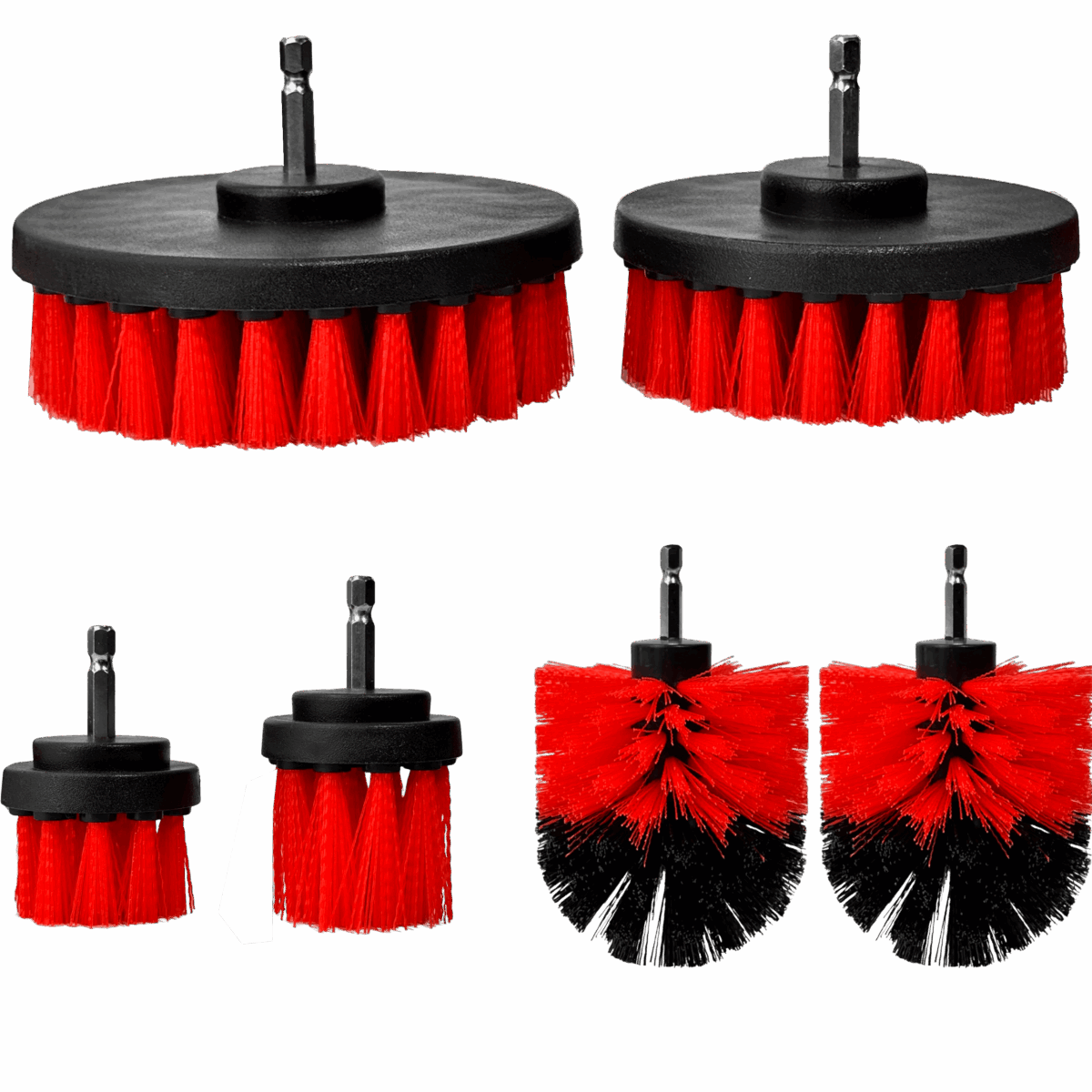 W zestawie otrzymujesz 6 szczotek czyszczących: 2 szczotki talerzowe (średnica 10 i 9 cm), 3 szczotki walcowe (średnica 5 cm, długości 4 i 5 cm), oraz 1 szczotkę stożkową idealną do zakamarków. Zestaw w kolorze czerwono-czarnym. Kompatybilne z większością standardowych wkrętarek i wiertarek.